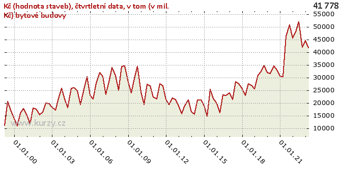 v tom (v mil. Kč) bytové budovy (Kč (hodnota staveb), čtvrtletní data) - ekonomika ČNB