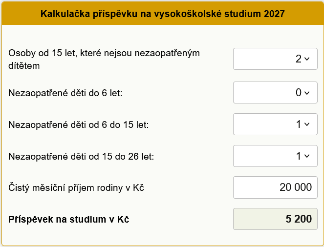 Kalkulačka příspěvku na vysokoškolské studium 2027