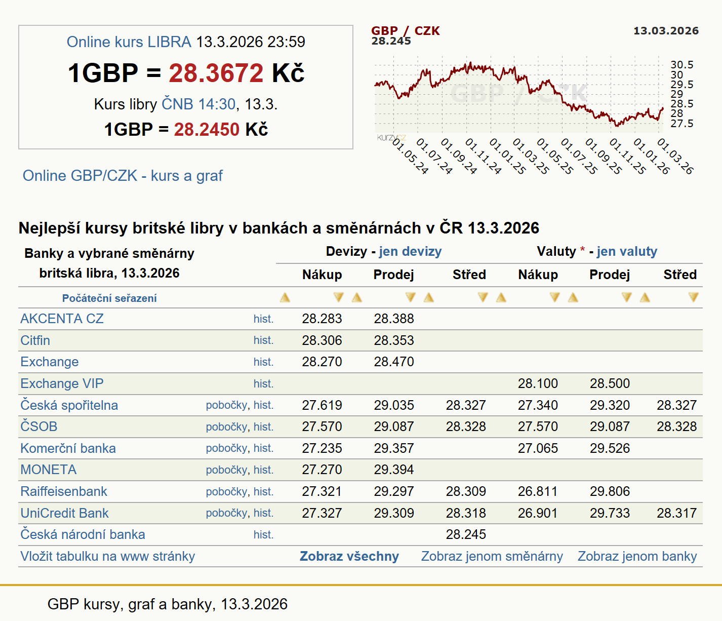 - GBP, britská libra - převod měn na CZK, českou korunu