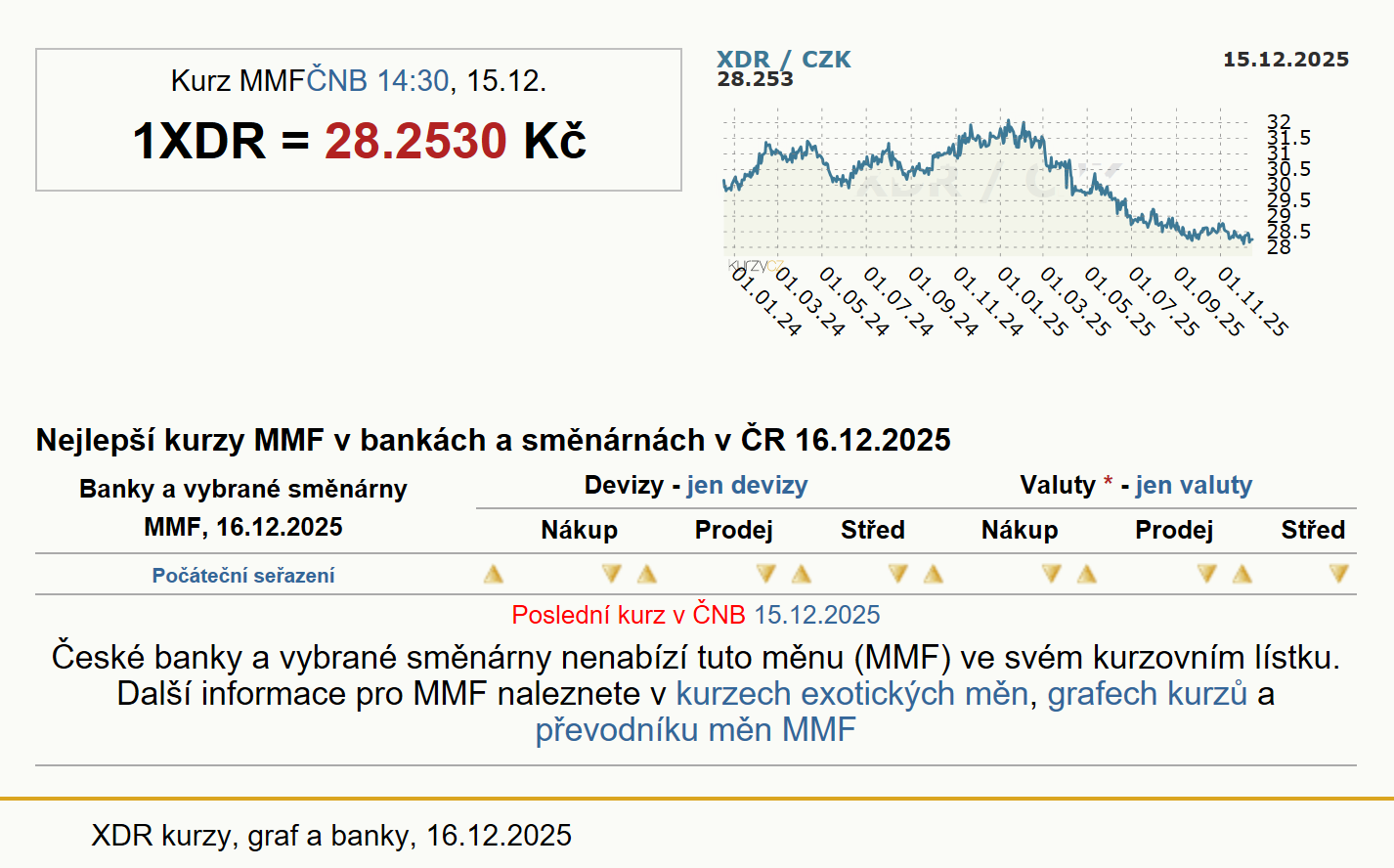 Podrobnější informace a průměrné kurzy ČNB jsou na stránce Historické kurzy MMF (XDR)