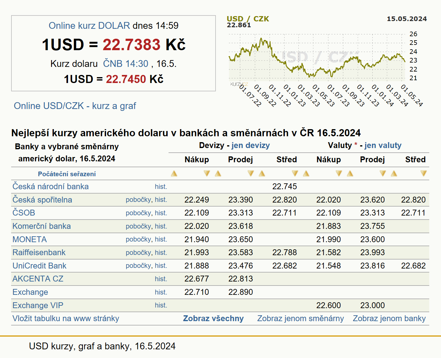 | RoklenFX | Provést směnu online USD/CZK CZK/USD | 22.4. 07:19 | 20.565 | 20.833 | 20.699 |