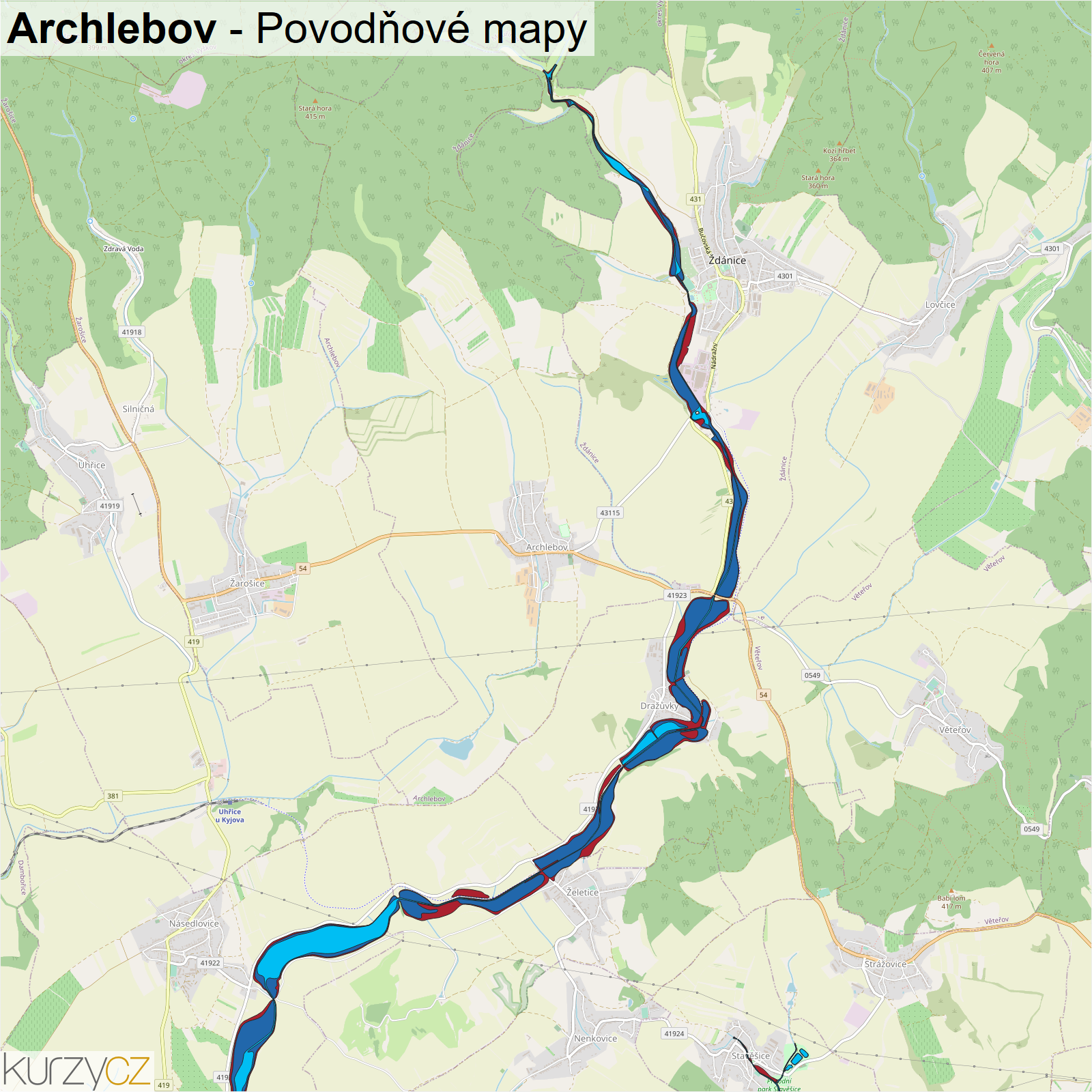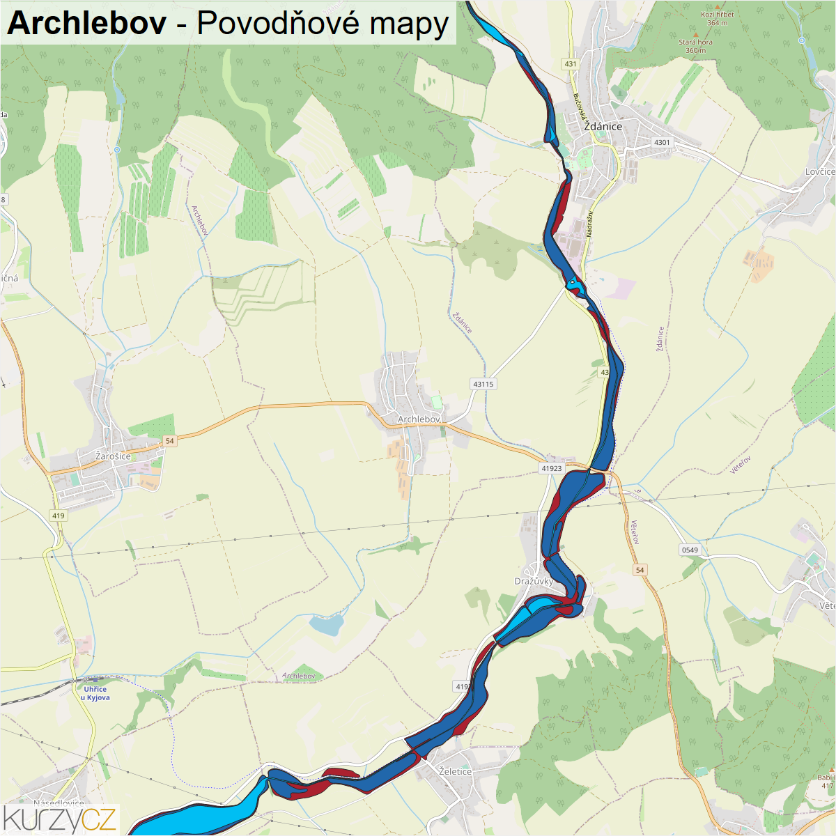 Záplavová mapa obce Archlebov
