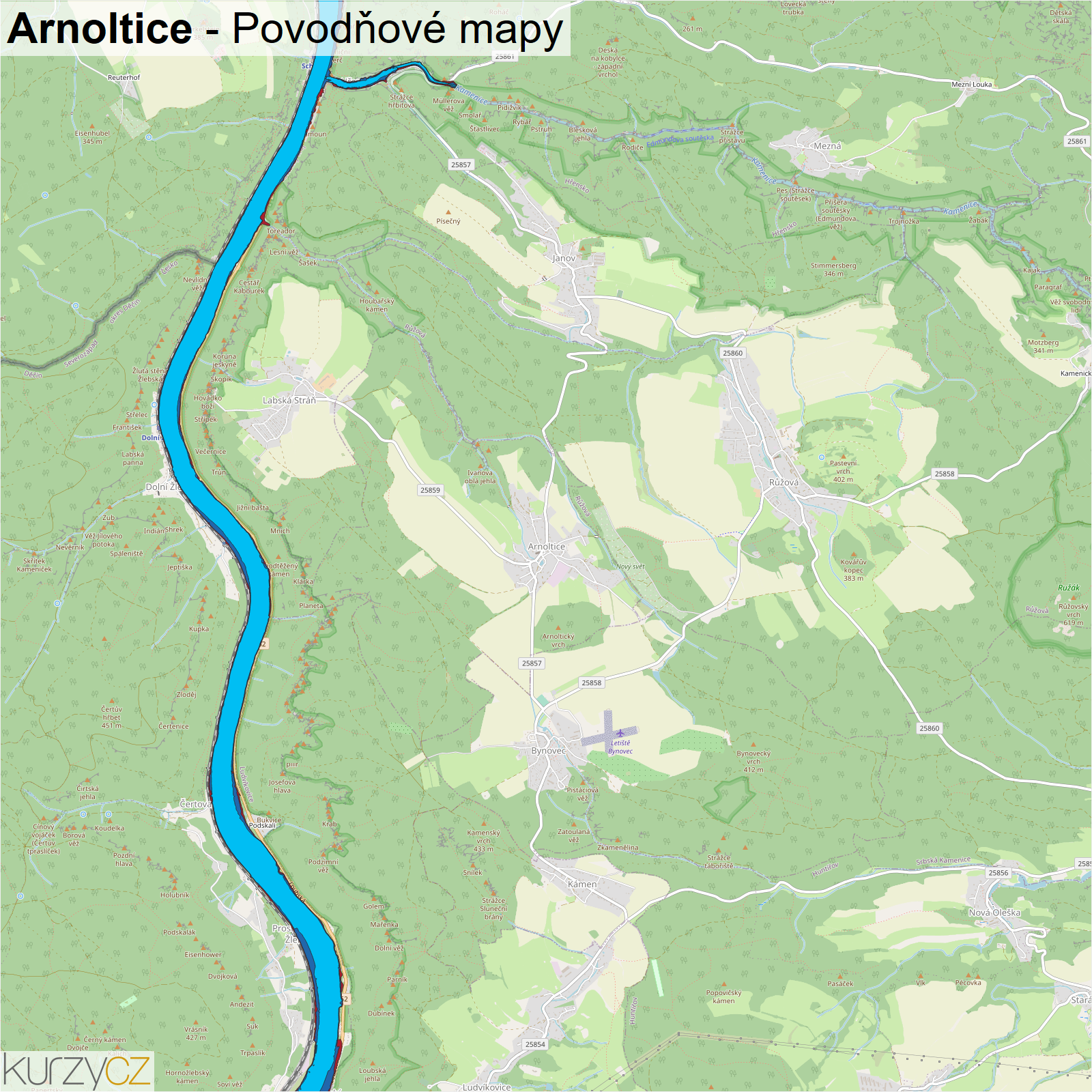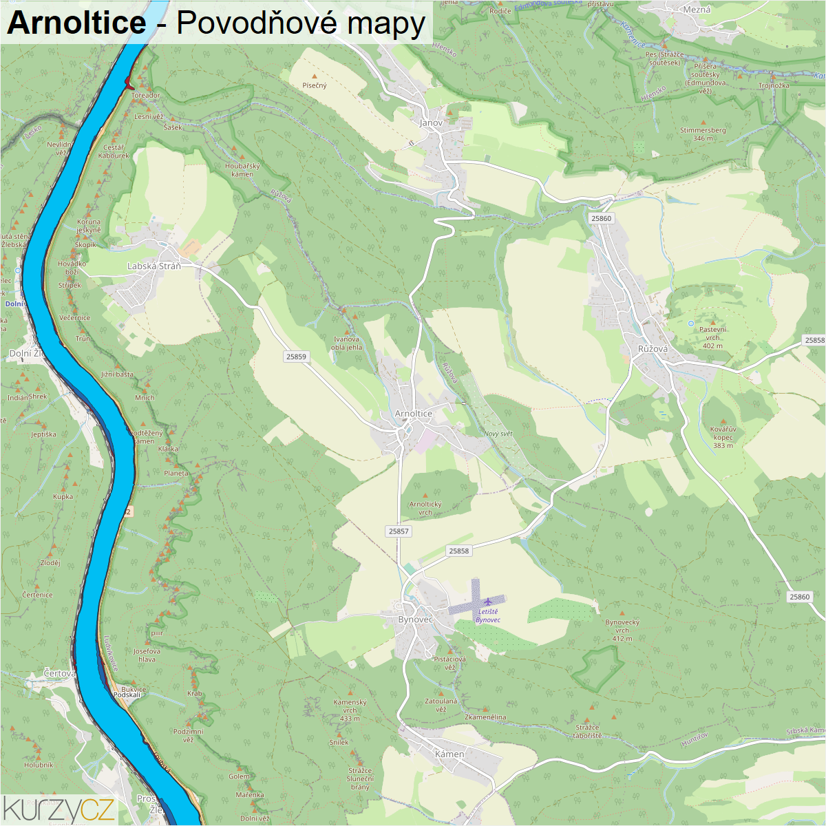 Záplavová mapa obce Arnoltice