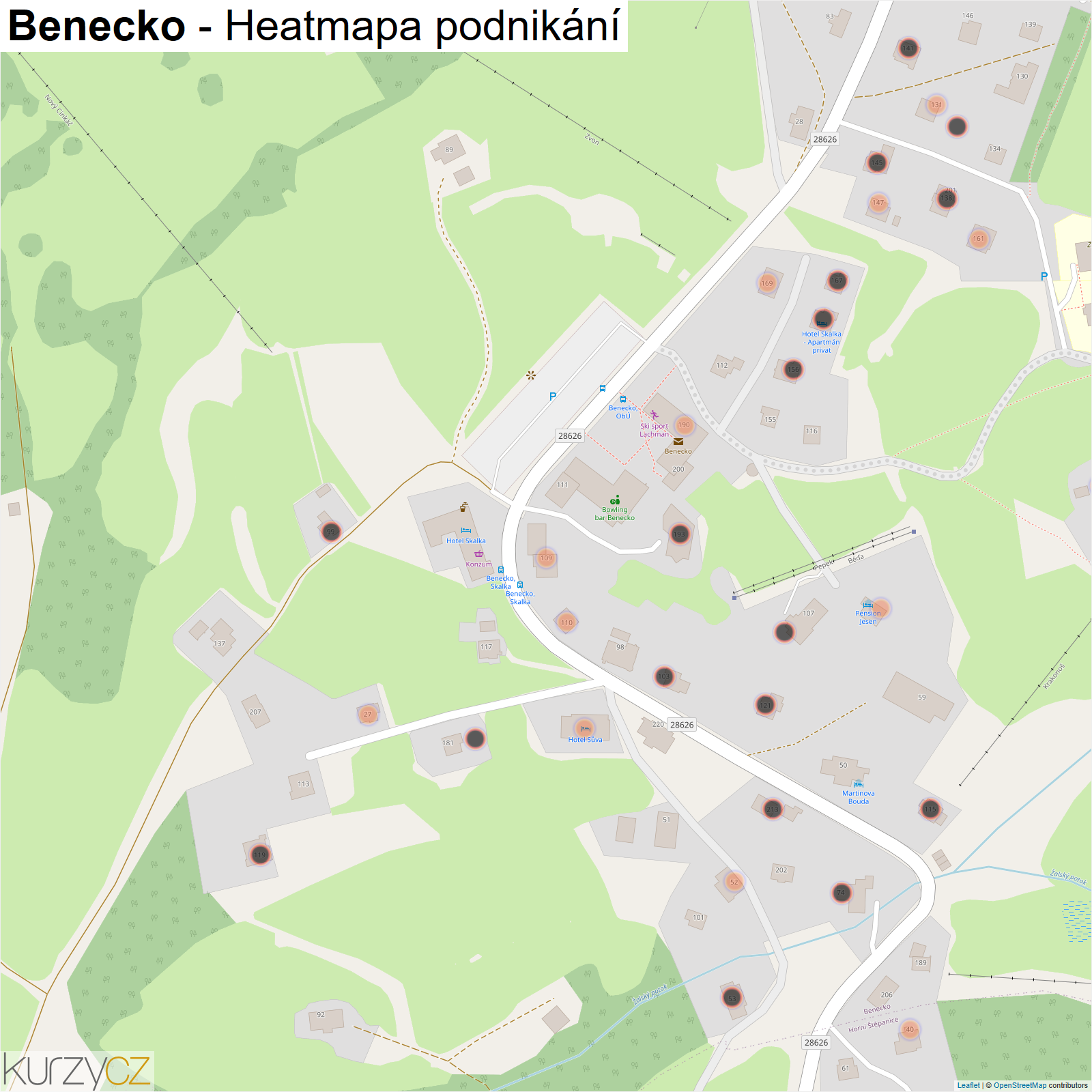 Mapa podnikání obce Benecko
