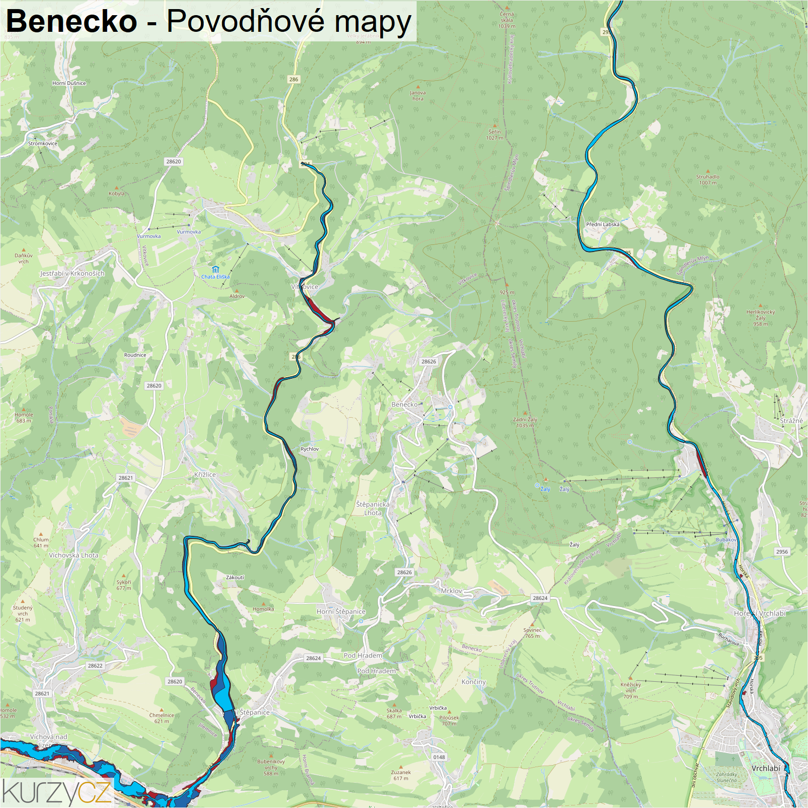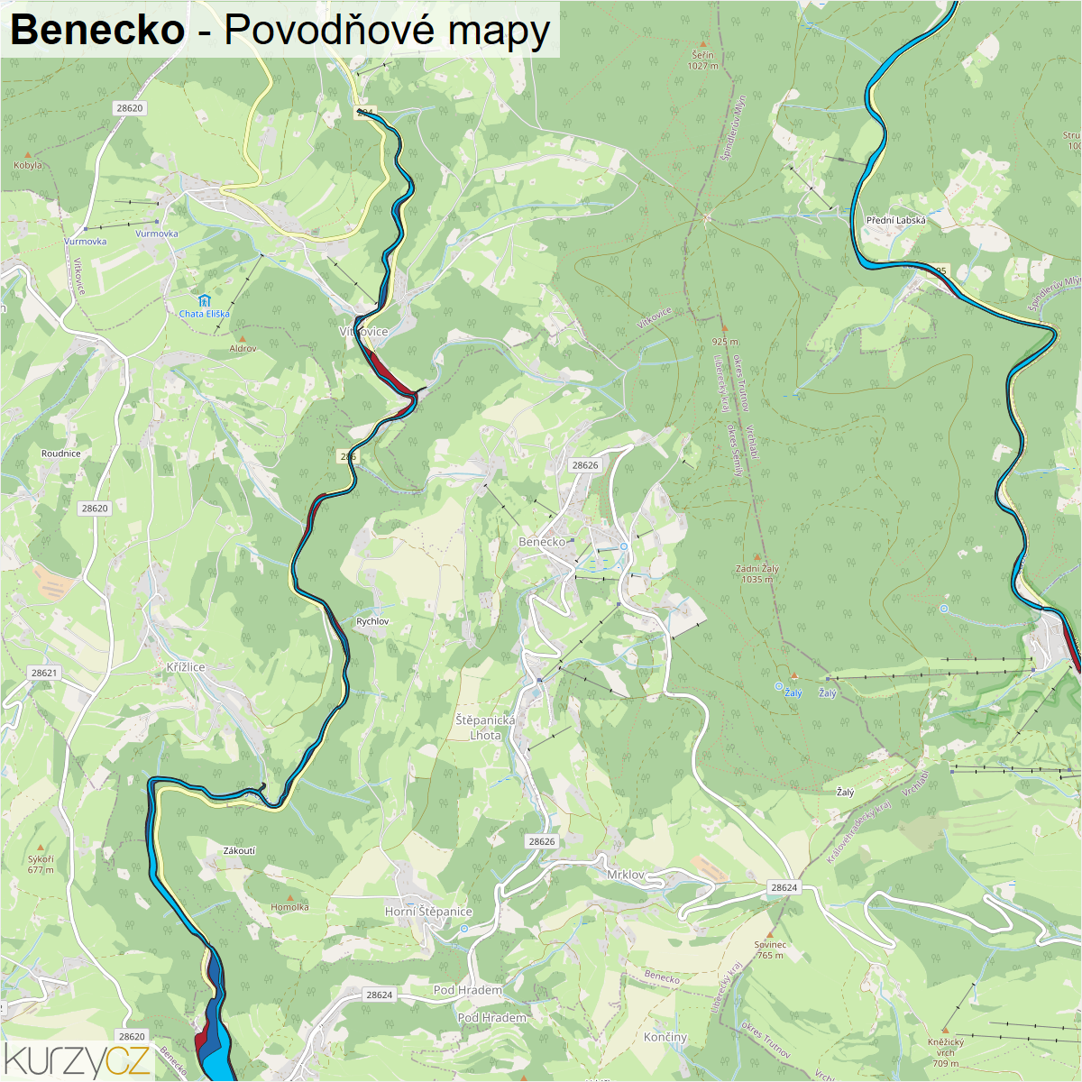 Záplavová mapa obce Benecko