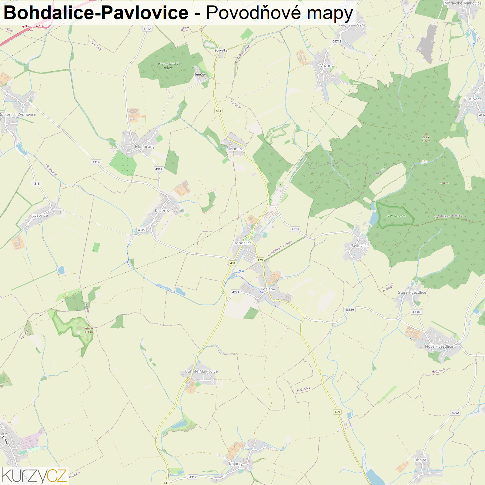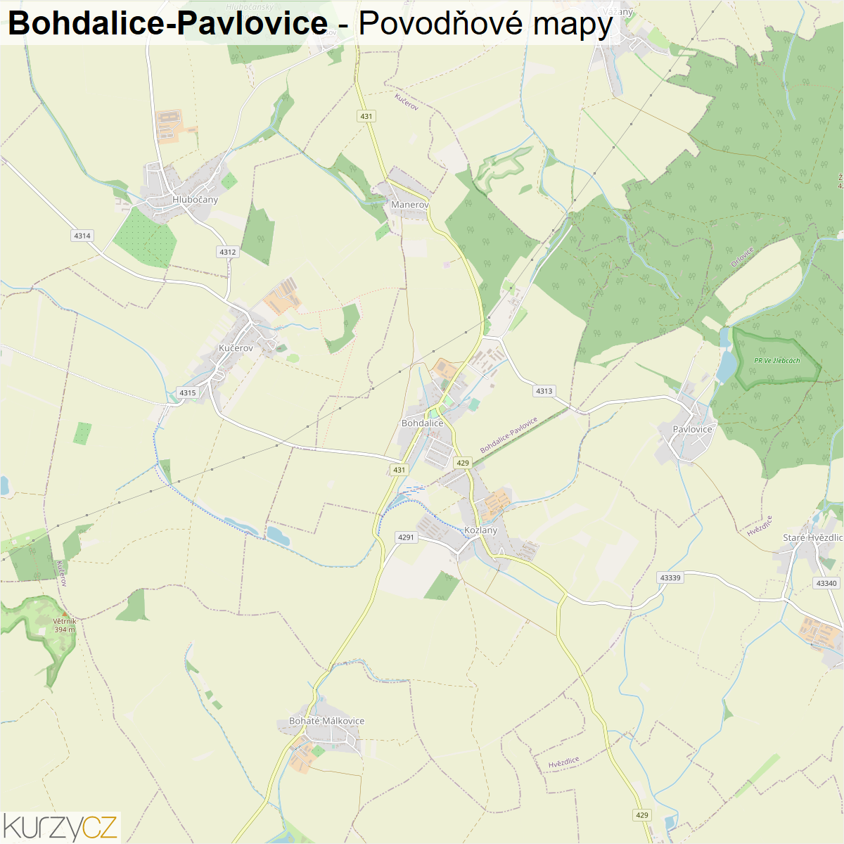 Záplavová mapa obce Bohdalice-Pavlovice