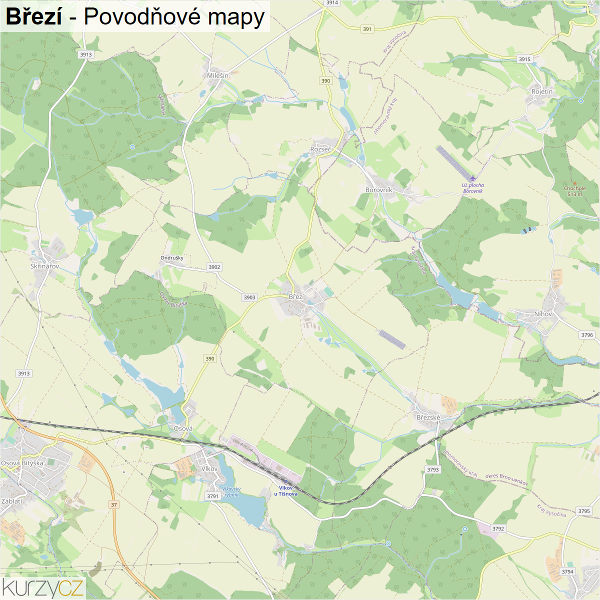 Záplavová mapa obce Březí