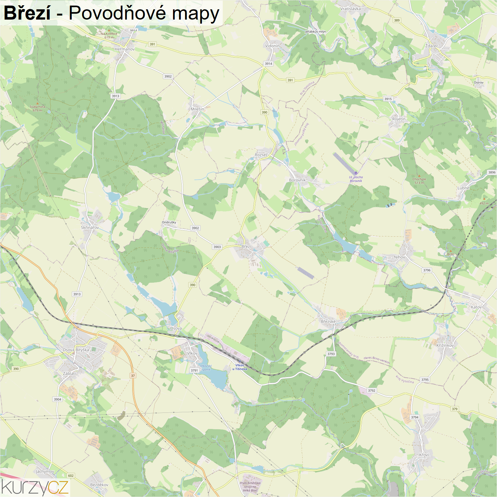 Mapa obce Březí a okresu Žďár nad Sázavou v ČR