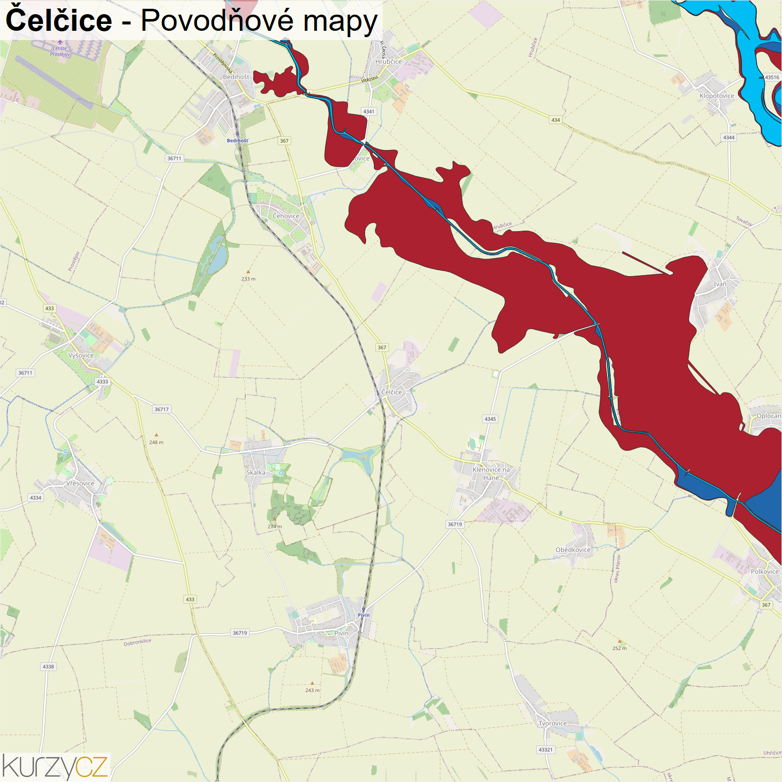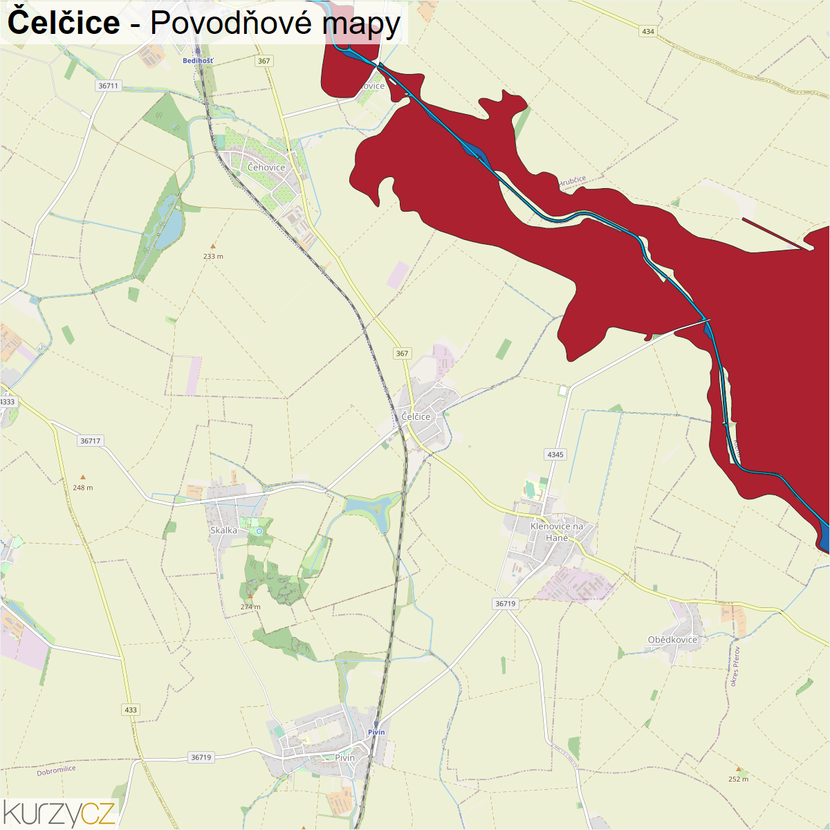 Záplavová mapa obce Čelčice