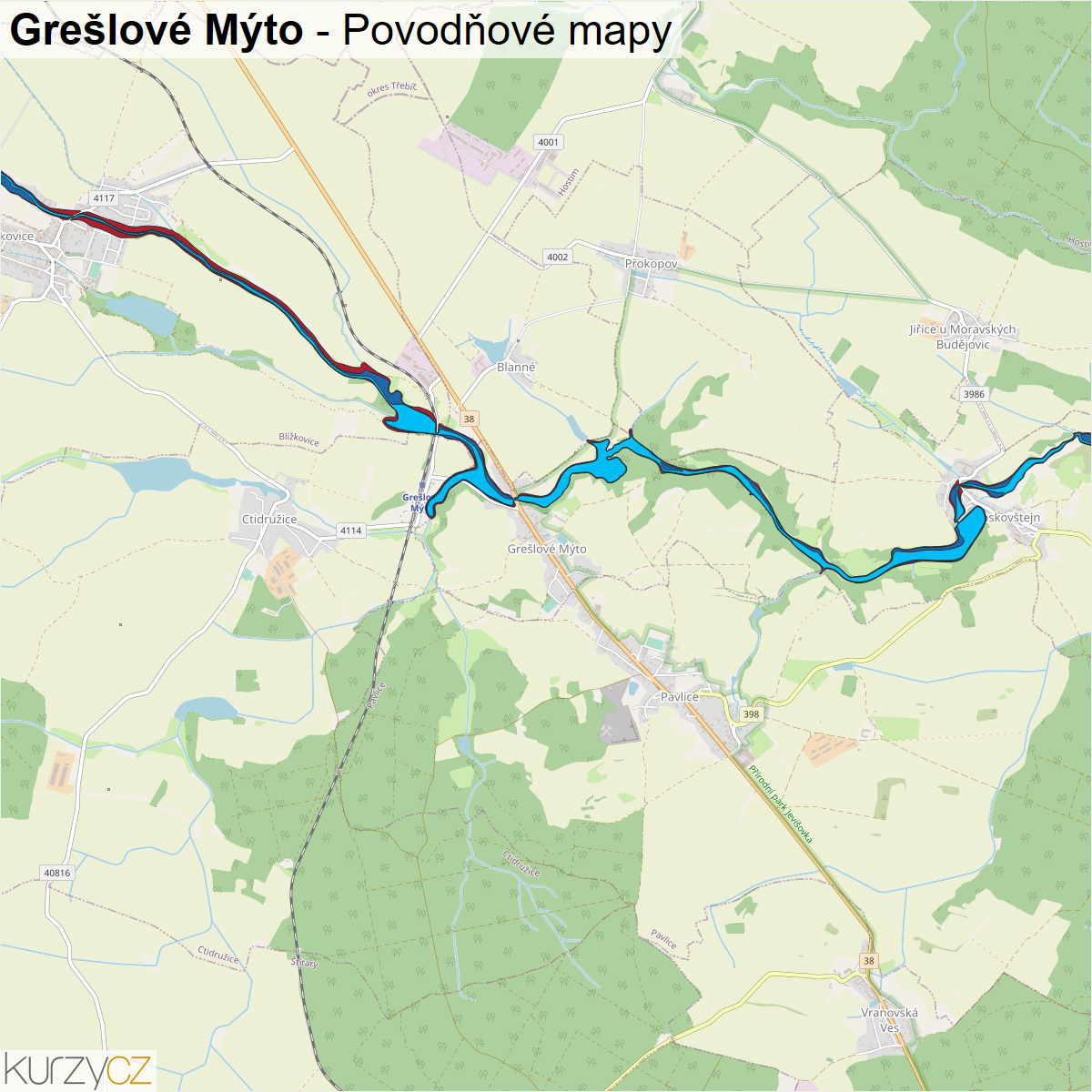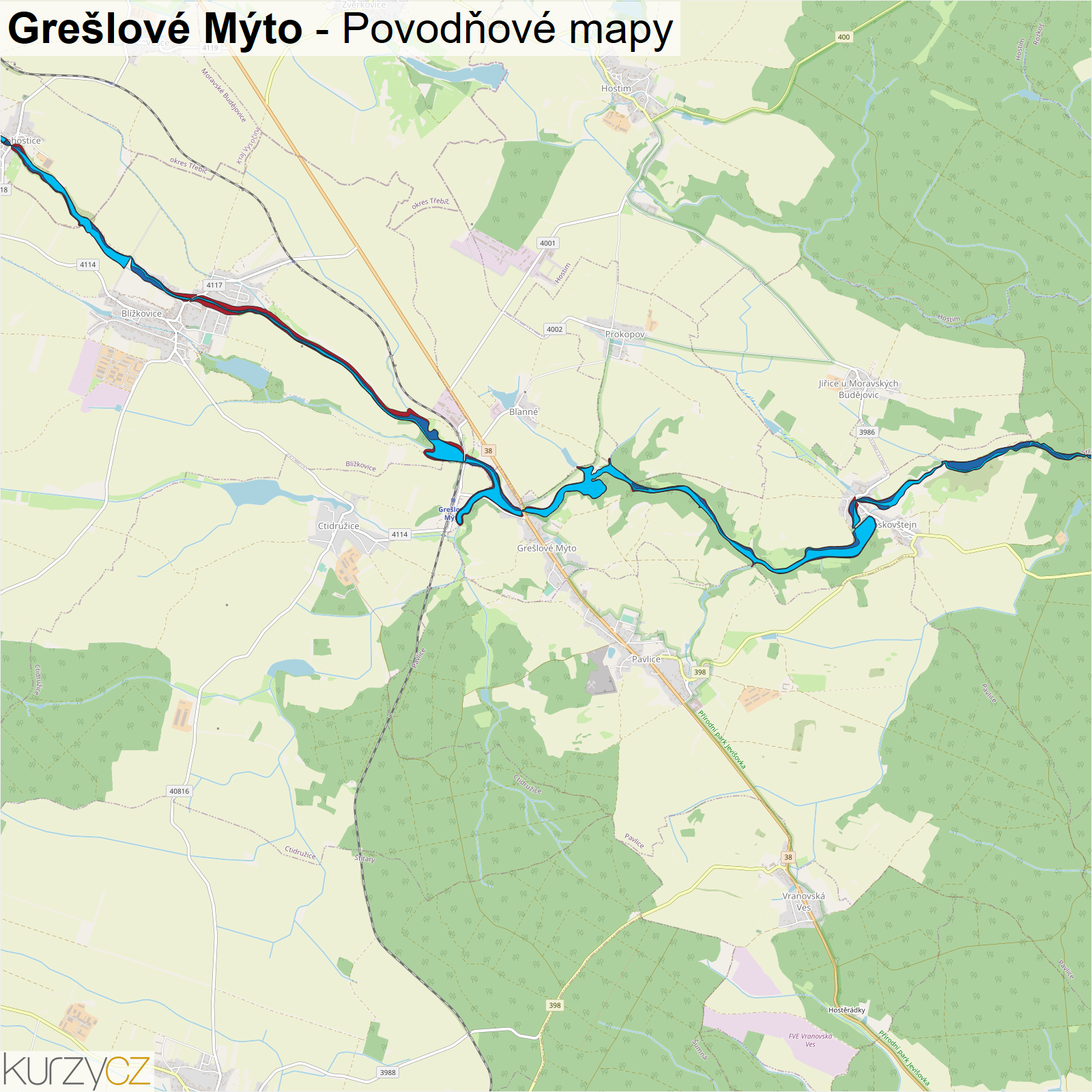 Mapa obce Grešlové Mýto, okresu Znojmo a kraje v ČR
