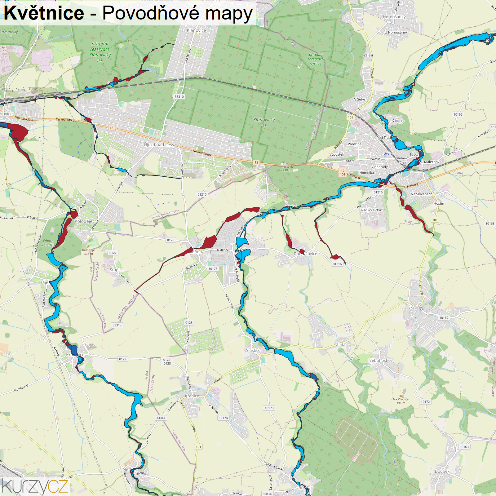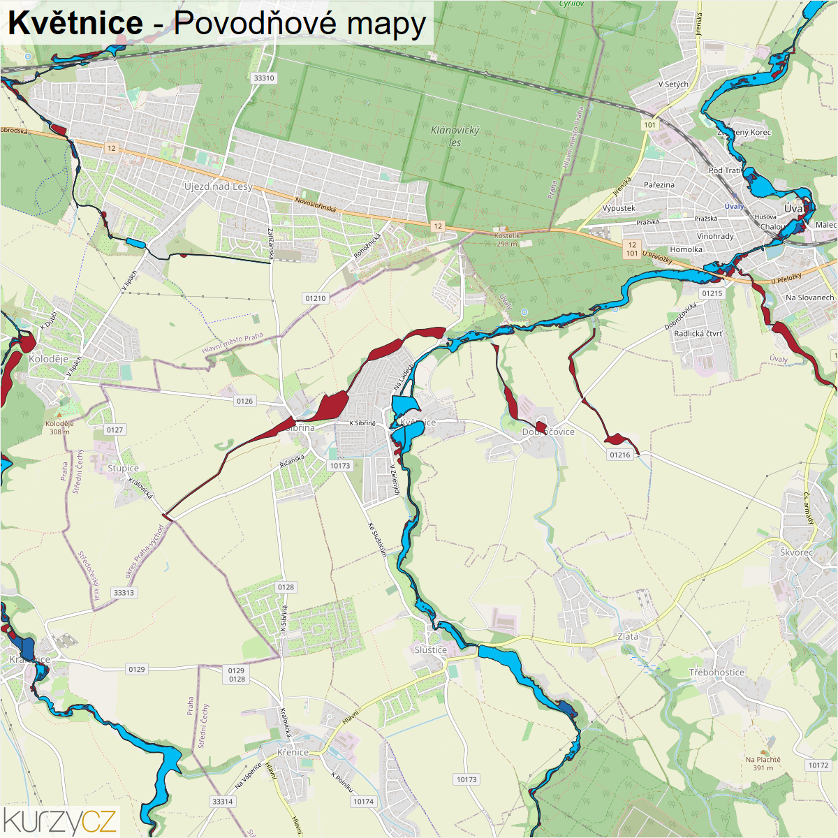 Záplavová mapa obce Květnice