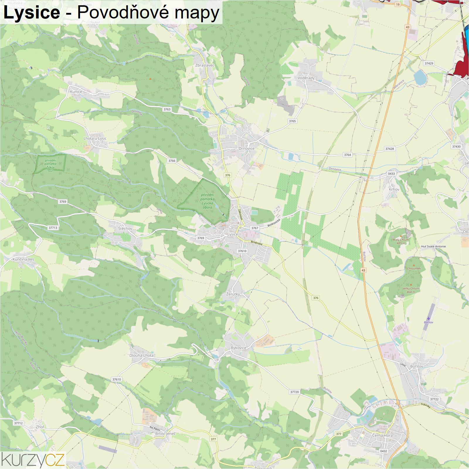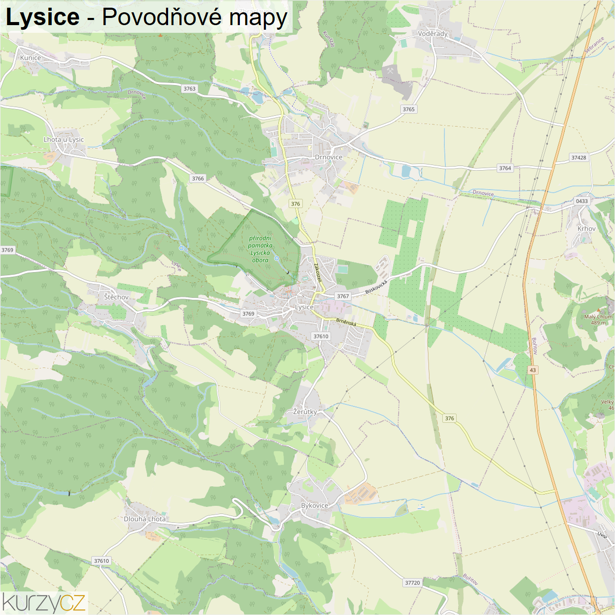Záplavová mapa městysu Lysice