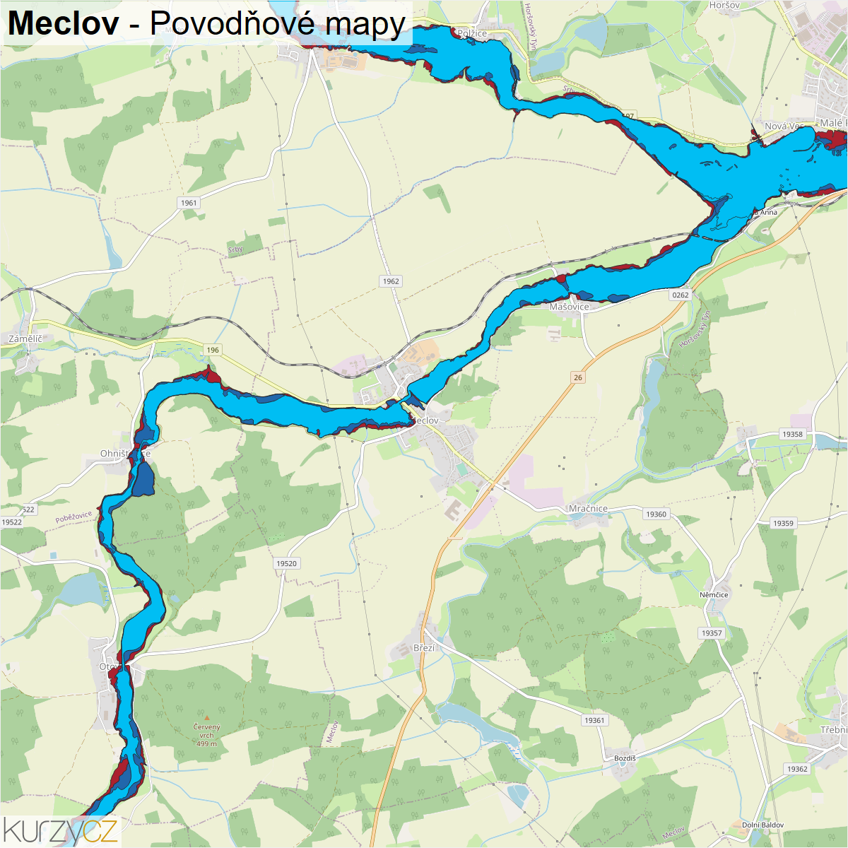 Záplavová mapa obce Meclov
