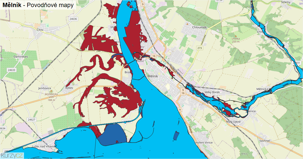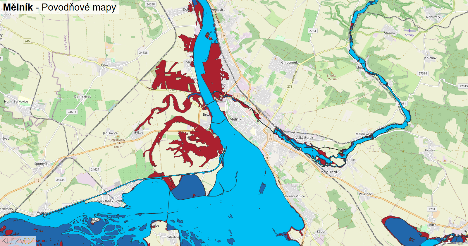 Stáhnout povodňovou mapu Mělníka; Mělníku: 1200px, 1600px