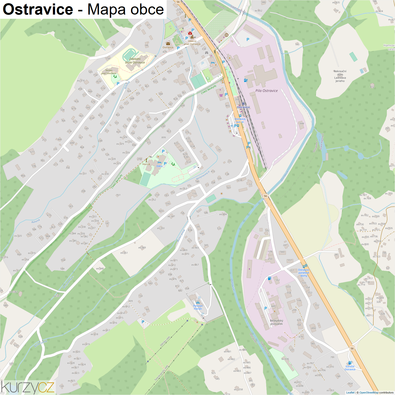 Základní mapa obce Ostravice v ČR