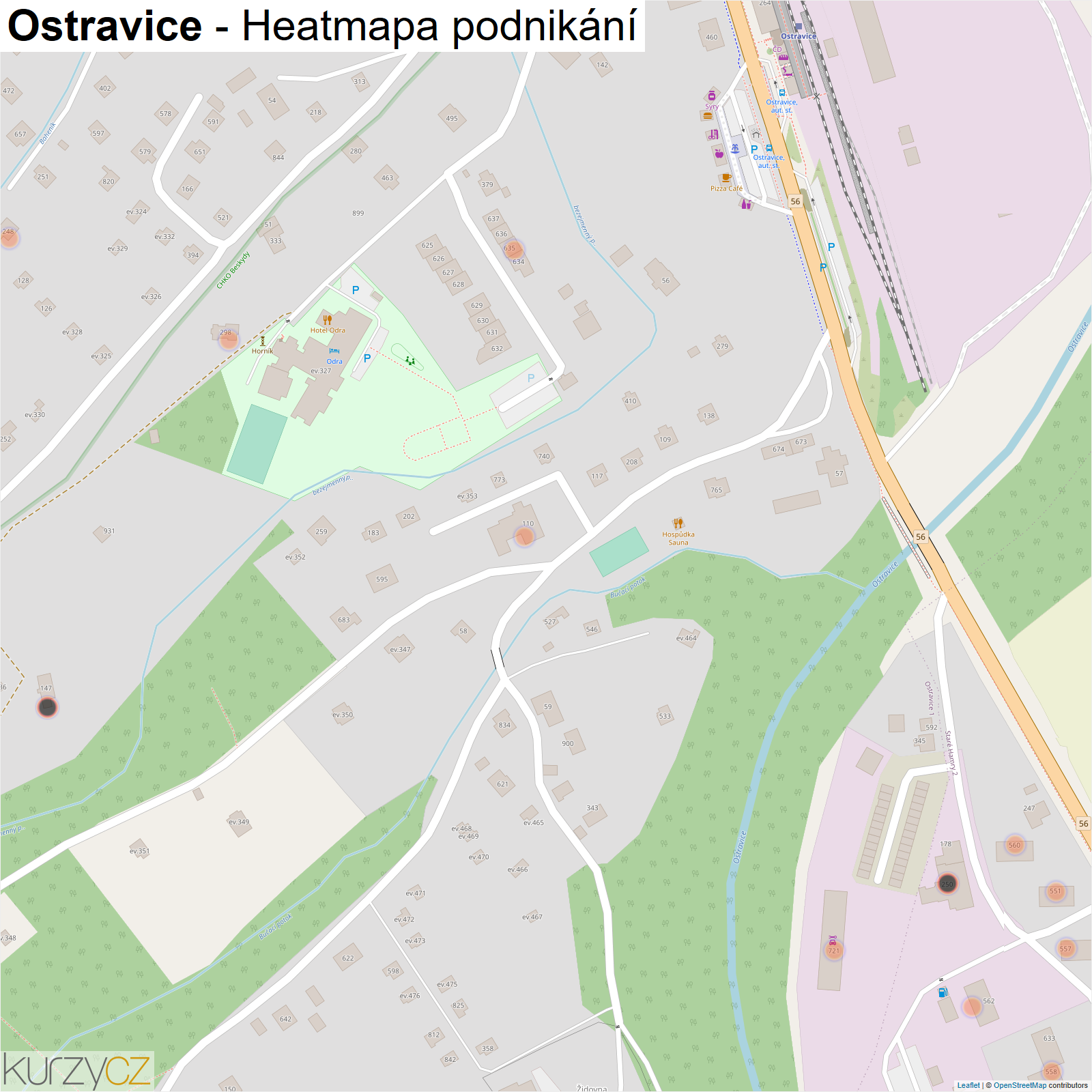 Mapa podnikání obce Ostravice