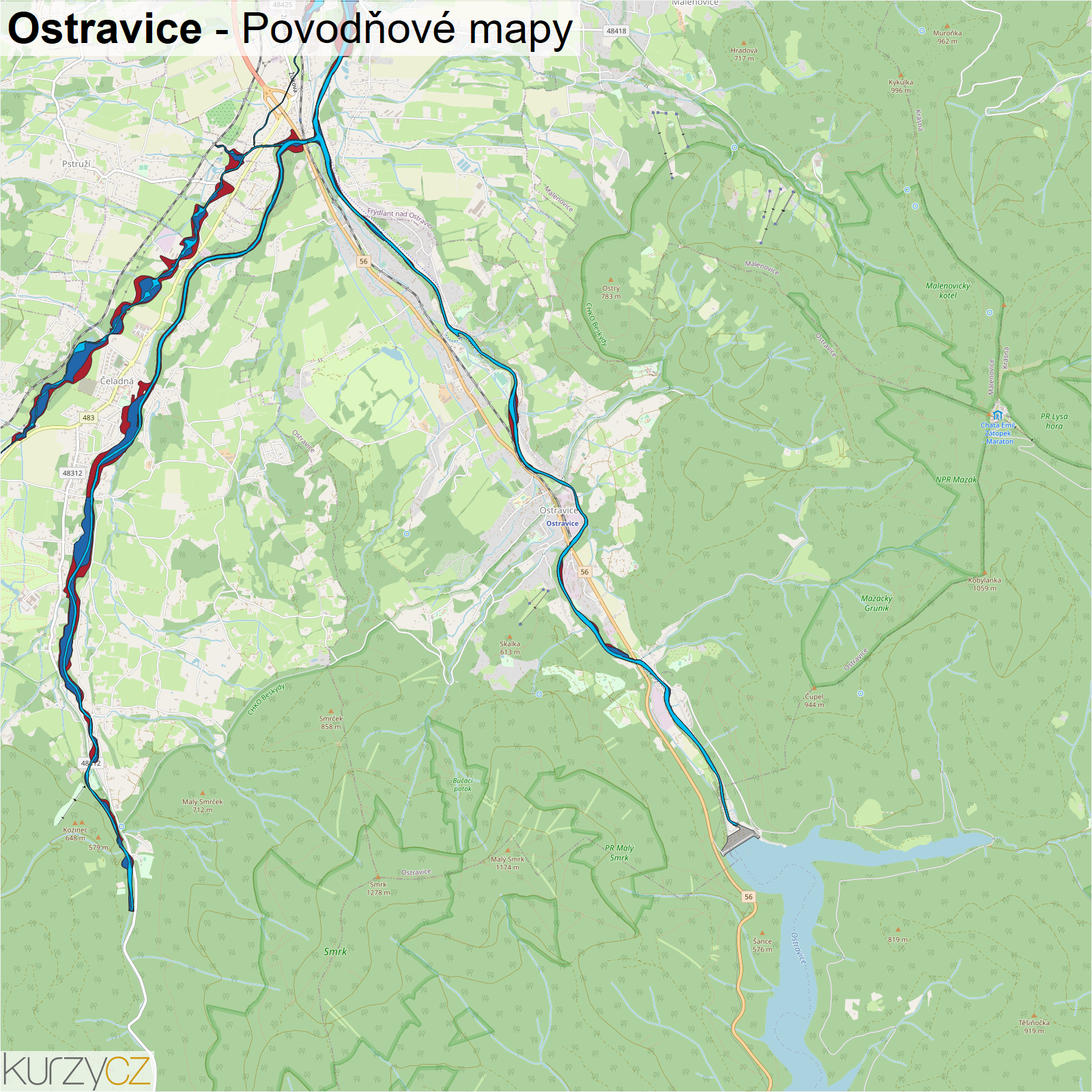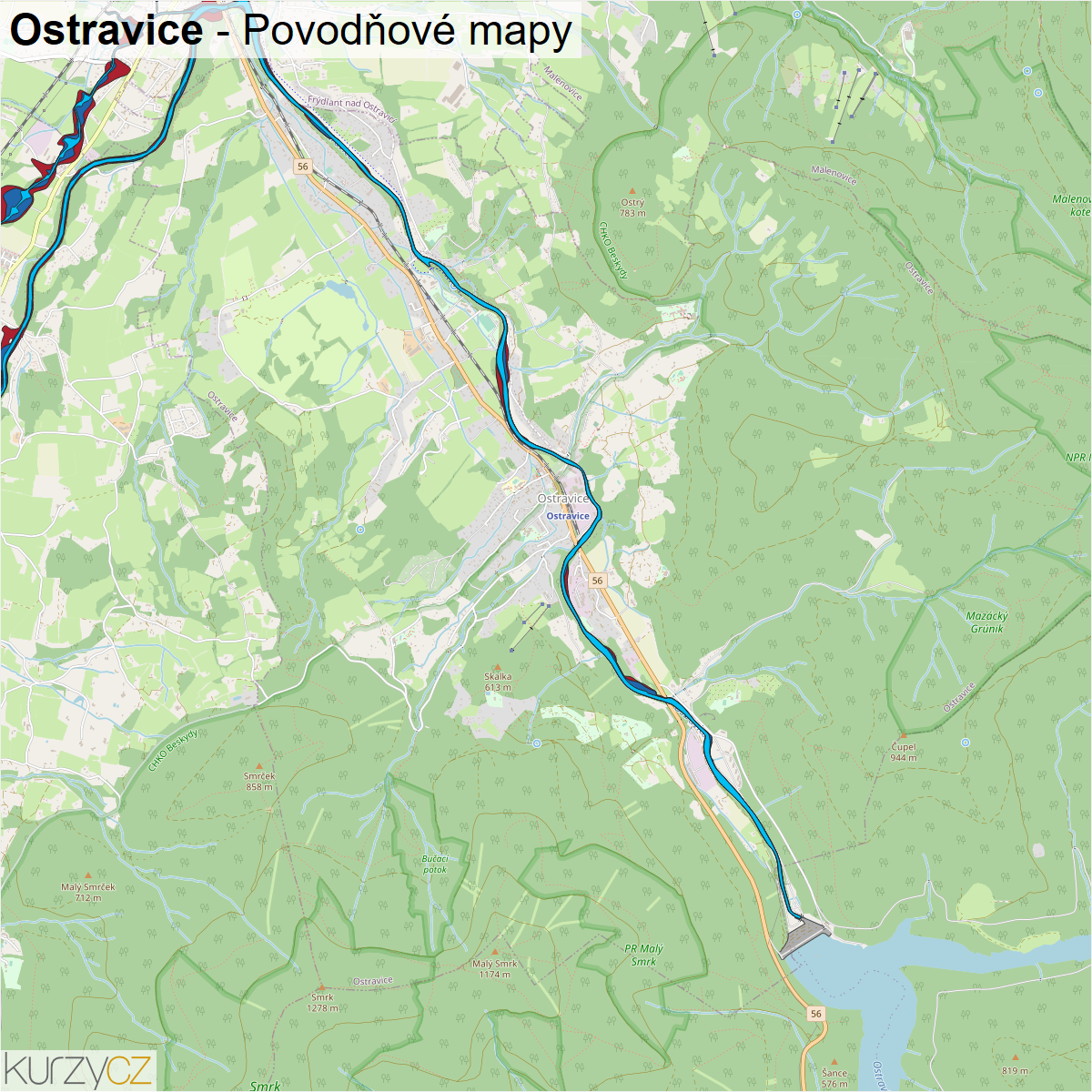 Záplavová mapa obce Ostravice