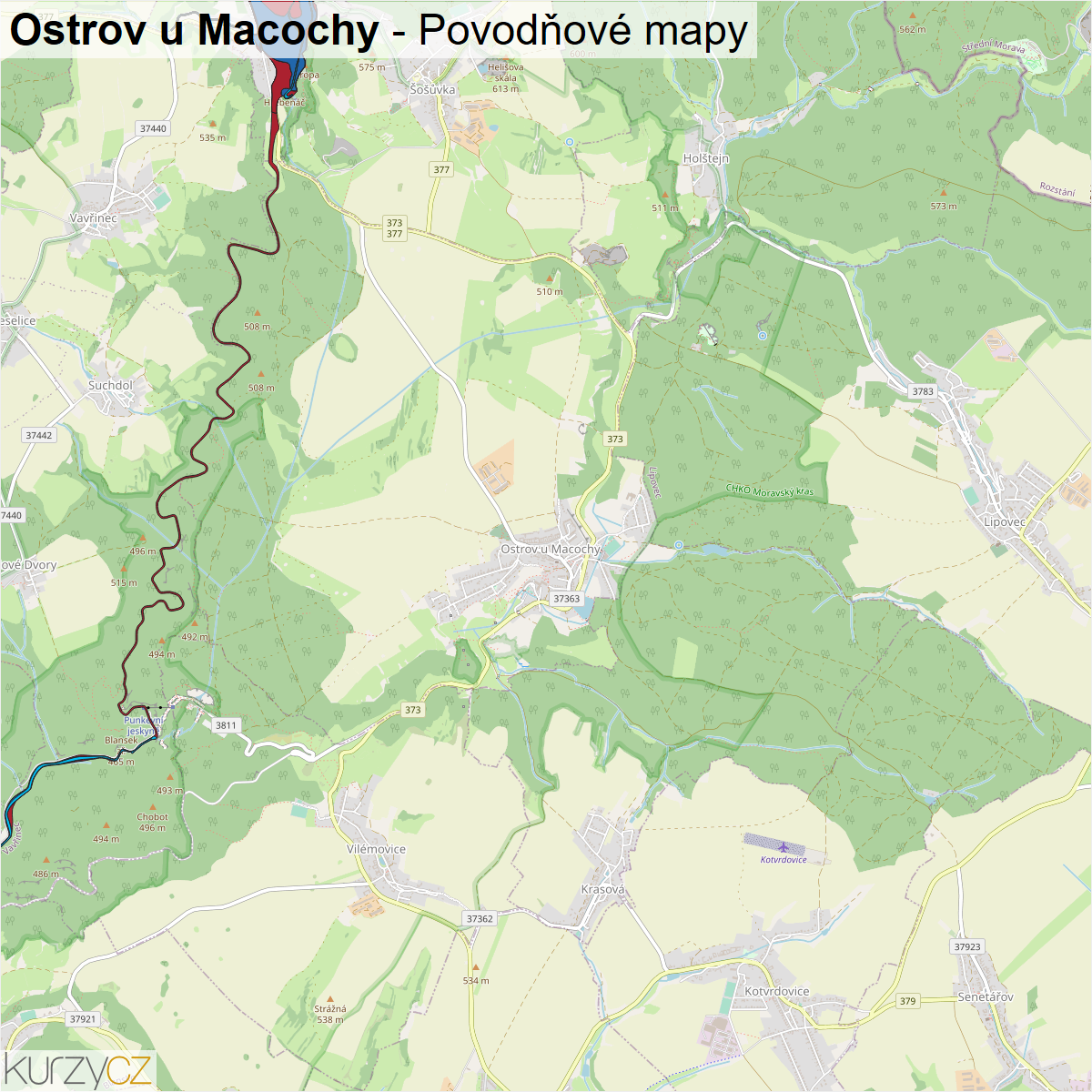 Mapa obce Ostrov u Macochy, okresu Blansko a kraje v ČR