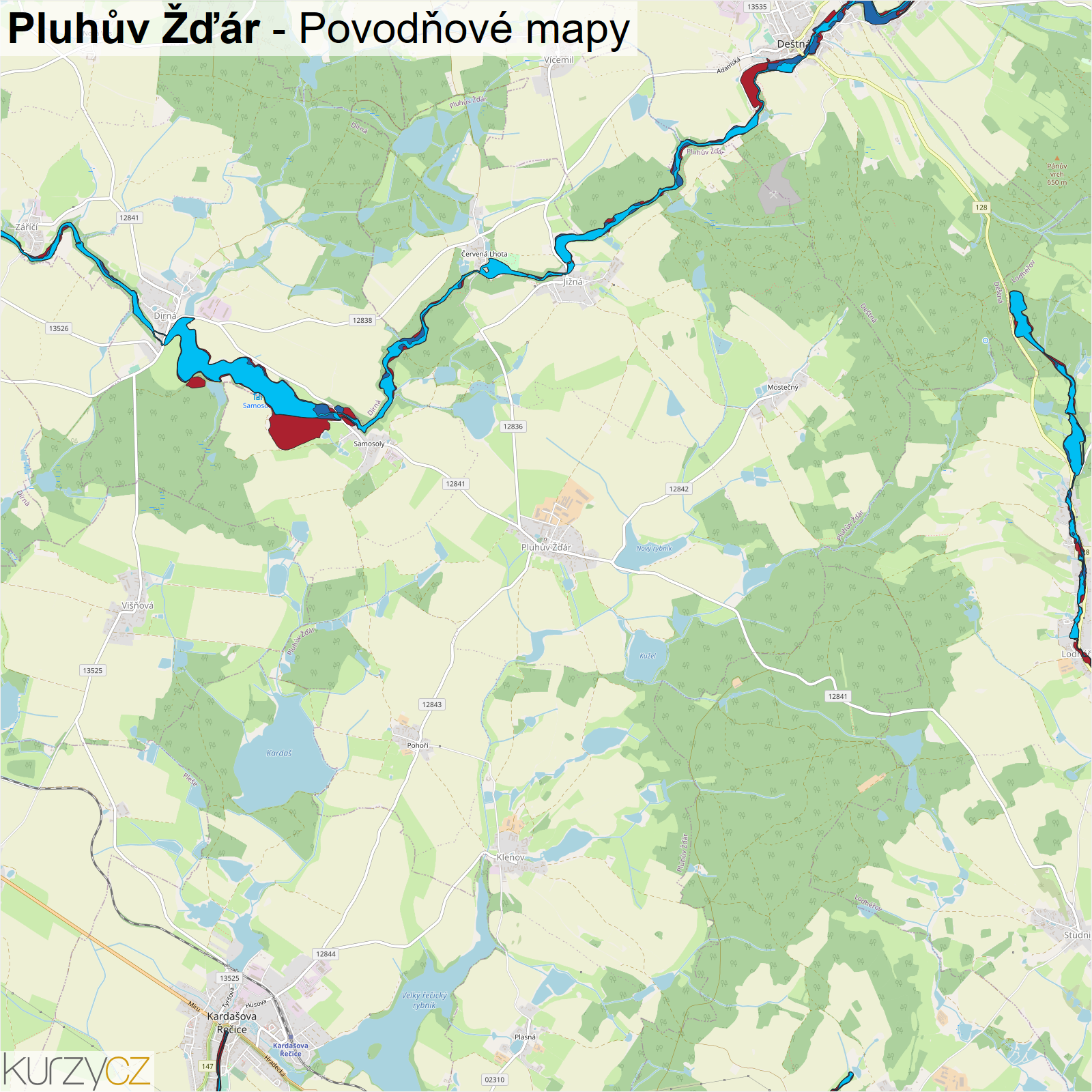 Mapa obce Pluhův Žďár, okresu Jindřichův Hradec a kraje v ČR