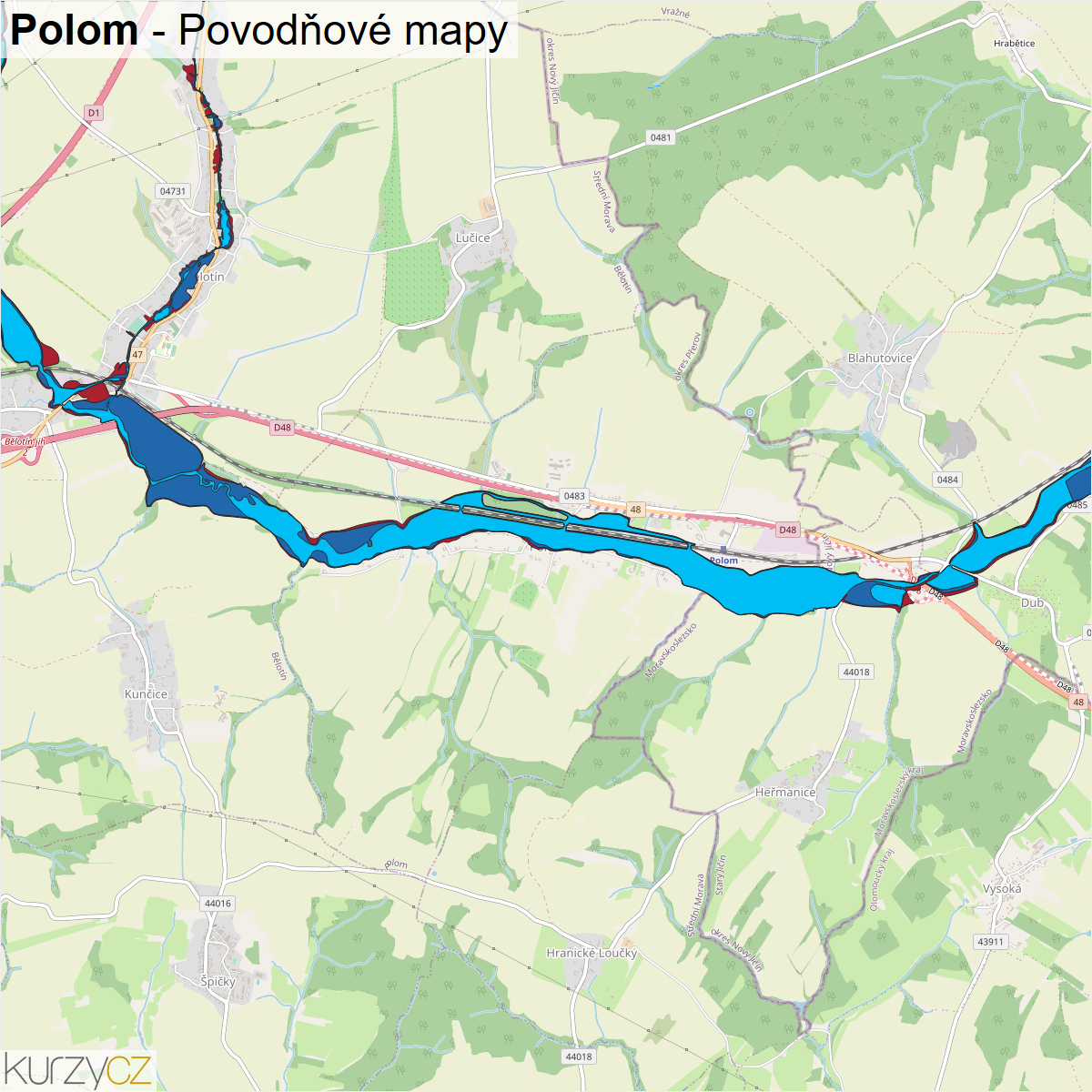 Mapa obce Polom, okresu Přerov a kraje v ČR