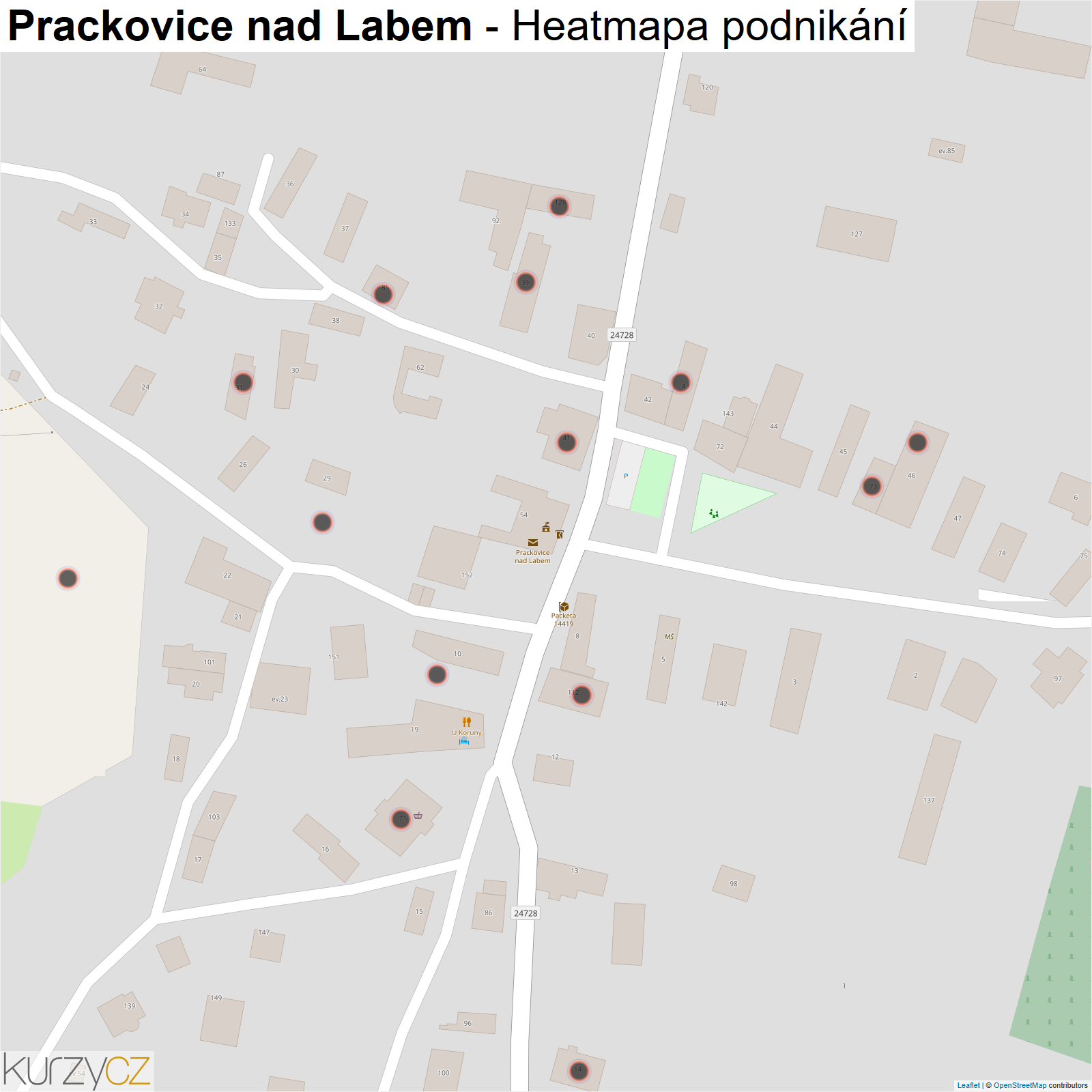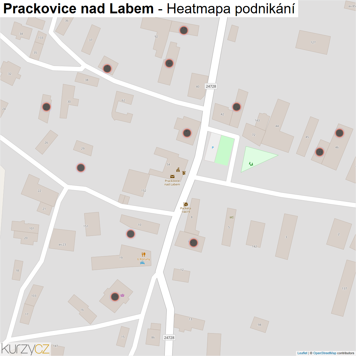 Mapa podnikání obce Prackovice nad Labem