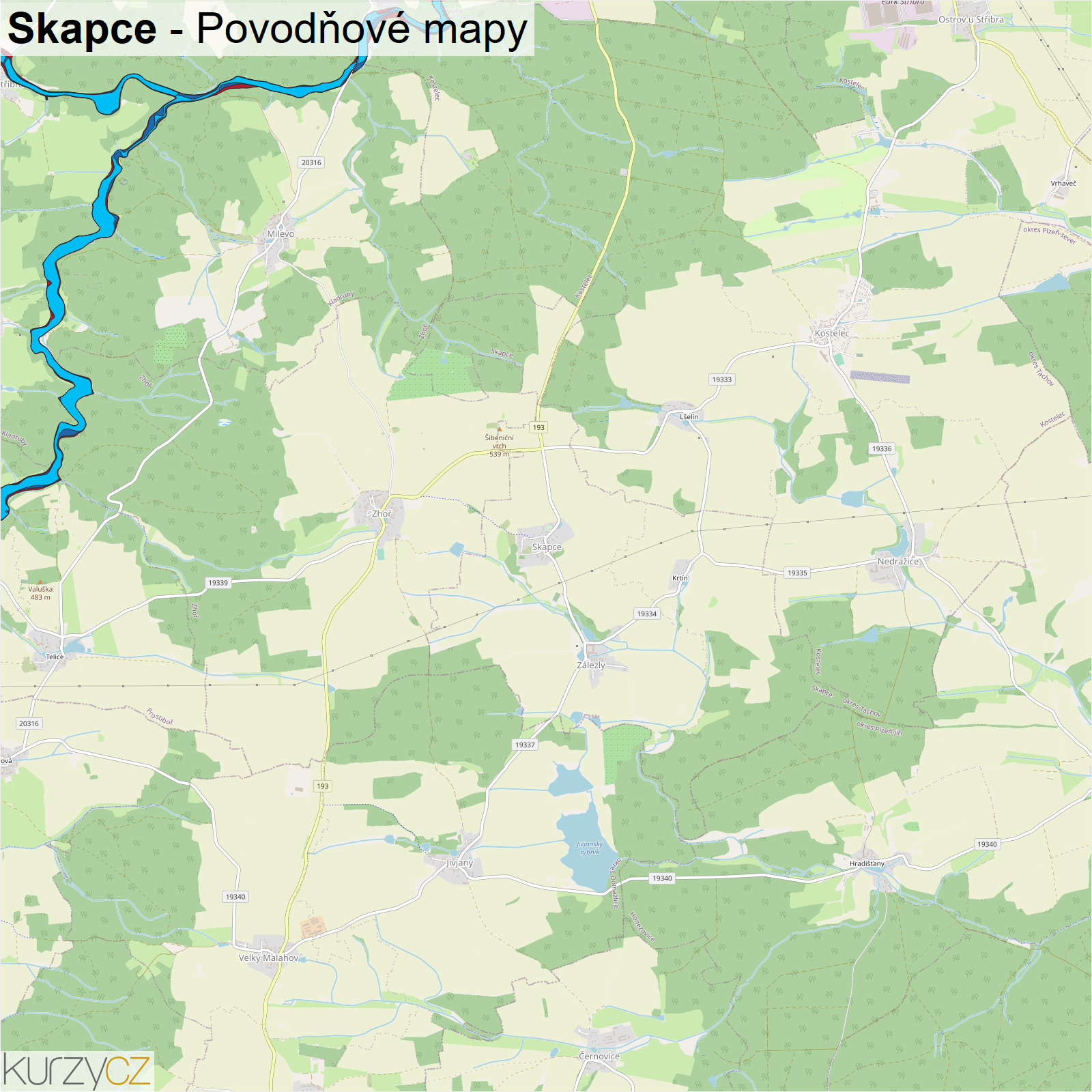 Záplavová mapa obce Skapce