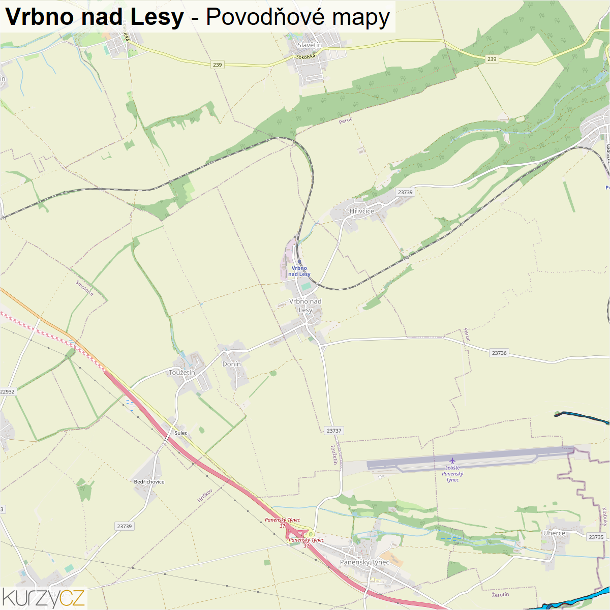 Záplavová mapa obce Vrbno nad Lesy