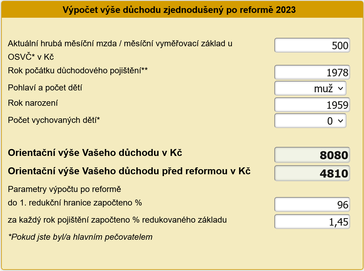 Zjednodušený výpočet starobního důchodu 2023 před a po reformě: